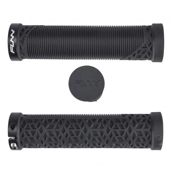 Les grips FUNN Hilt offrent une prise en main particulièrement sécurisante ! Leur surface propose deux zones d’adhérence différenciées, dont une est striée pour conserver le meilleur appui possible, quelles que soient les conditions de ride.