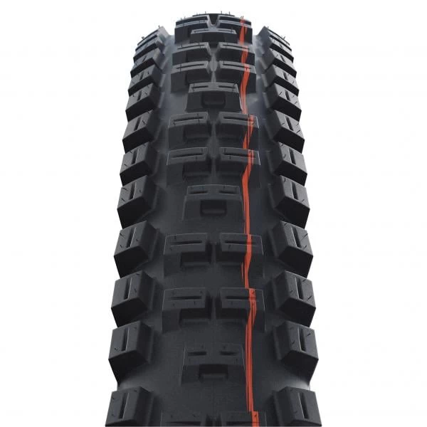 Ses crampons larges et anguleux offrent une traction de freinage maximale, tandis que son épaulement extrêmement stable permet une adhérence exceptionnelle dans les virages pour une sécurité améliorée. De plus, sa bande de roulement ouverte et agressive propose une excellente adhérence et un auto-nettoyage performant.