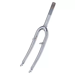 La fourche couleur chrome dispose d’un pivot non fileté de 28 cm de long et d’un diamètre de 1 1/8 pouce. Pour monter la fourche, équipez-vous d’une potence ahead 28.6 mm et d’une entretoise de direction pour potence ahead. L’entretoise est disponible en option en plusieurs tailles. Un oeillet sur l’avant de la fourche permet de fixer un éclairage vélo ou un porte bagage avant. Des tasseaux sur chaque jambe de la fourche sont également prévus pour monter des étriers de freins V-Brake.