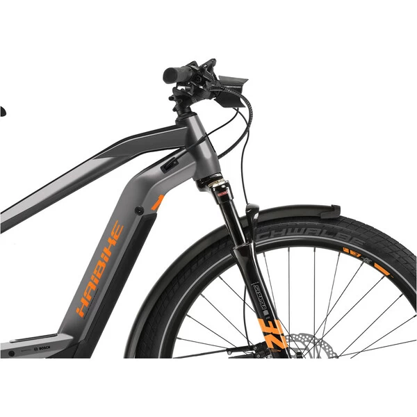 Côté transmission, Haibike a opté pour le groupe Shimano Deore SLX 12 vitesses réputé pour sa fiabilité et sa polyvalence, qui permettra de s’aventurer sur les chemins escarpés. Pour sécuriser le tout, le Trekking 10 est doté de freins à disques hydrauliques Shimano Deore qui offrent un freinage à la fois constant et puissant.