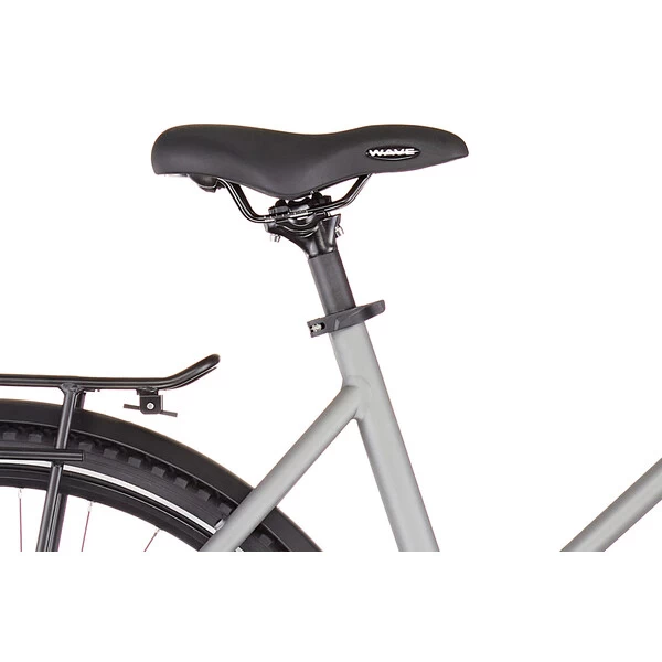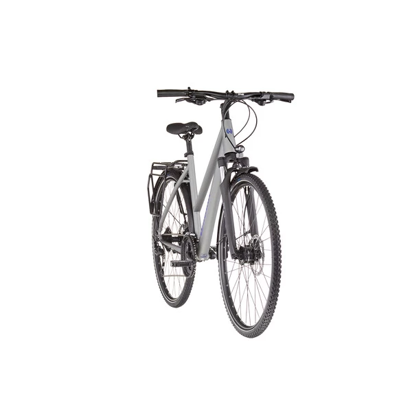 Conçu autour d’un cadre en aluminium 6061 robuste et confortable assurant une position agréable pour la longue distance, il reçoit en plus une fourche suspendue avec ressort en acier offrant 63 mm de débattement afin d’absorber les irrégularités de la route et des sentiers. Avec ses jantes double paroi et ses pneus larges, il pourra en effet s’aventurer sur les chemins de traverse.