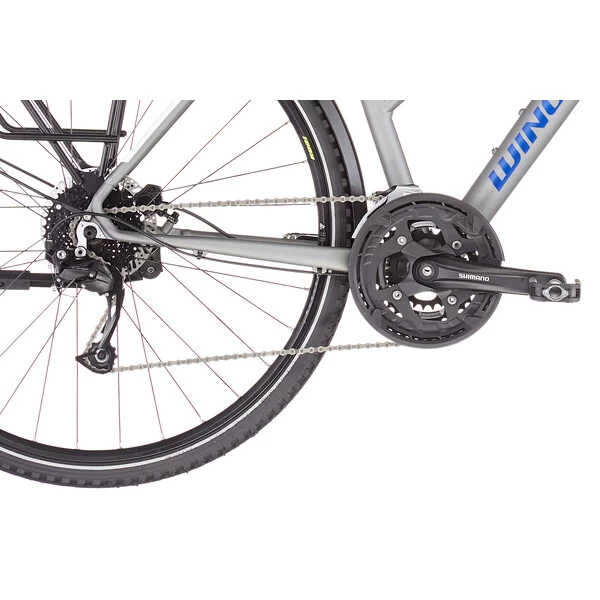 Les composants ont été selectionnés dans une optique de solidité et de fiabilité, notamment avec une transmission Shimano Alivio 3×9 vitesses procurant une grande polyvalence.