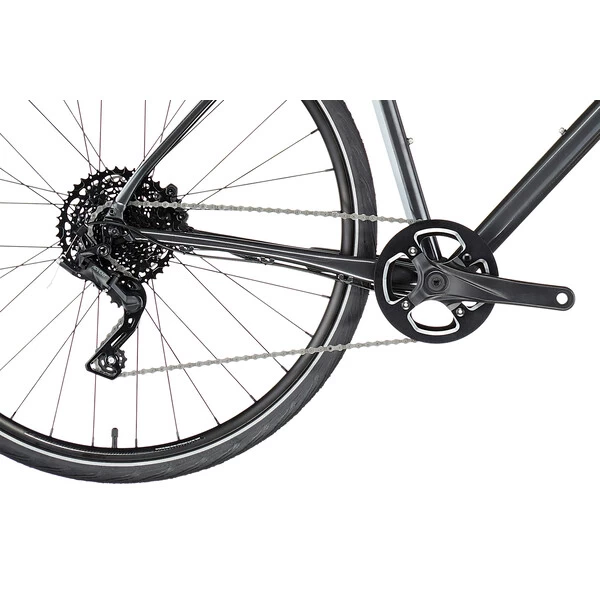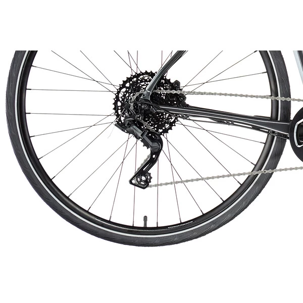 Il est équipé d’une transmission monoplateau 1 x 9 vitesses simple à utiliser et fiable. Question freinage, le Quick n’est pas non plus en reste puisqu’il possède des freins à disque hydrauliques Tektro HD-R280, particulièrement efficaces en descente ou par temps humide. Enfin, le vélo reçoit des pneus Schwalbe Spicer, 700 x 35c garantissant une excellente accroche en virage, un grand confort et une belle résistance.