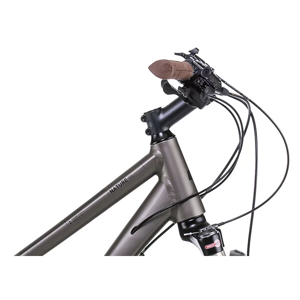 Doté d’un cadre en aluminium léger procurant une position confortable et efficace, même après plusieurs heures sur la selle, le Nature SL reçoit ainsi une transmission complète Shimano XT réputée pour sa fiabilité et son efficacité, en garantissant des passages de vitesses rapides et précis. Une fourche suspendue, à air légère, SR Suntour de 63 mm de débattement garantit un confort optimal tandis que les freins à disque Shimano XT 8100 assurent un freinage puissant et sécurisant en toutes circonstances.