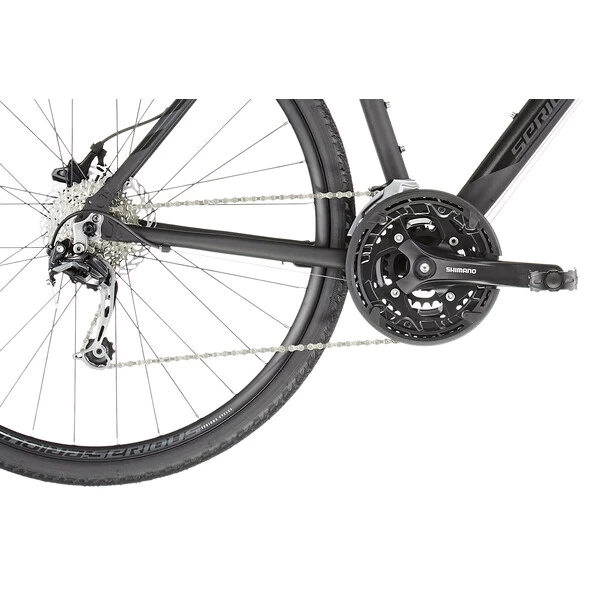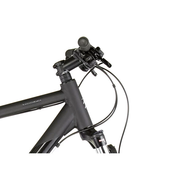 Son cadre aluminium et sa fourche suspendue SR Suntour de 60 mm de débattement offrent un grand confort de pilotage et une très bonne maniabilité. Le Sonoran est intégralement équipé de composants Shimano. La transmission Shimano 27 vitesses (3×9) avec dérailleur arrirèe Alivio garantit une fiabilité remarquable et une parfaite polyvalence, tandis que les freins à disque hydrauliques Shimano MT200 garantissent un bon mordant et une efficacité constante quelles que soient les conditions.
