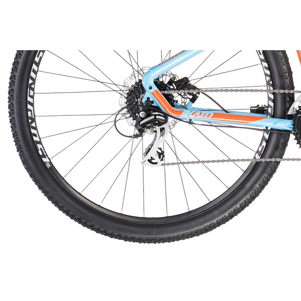 Conçu en aluminium, ce VTT dispose d’une fourche de 100 mm de débattement avec blocage au guidon assurant un très bon confort, et d’une transmission 3×8 vitesses permettant d’affronter sereinement tous les terrains.