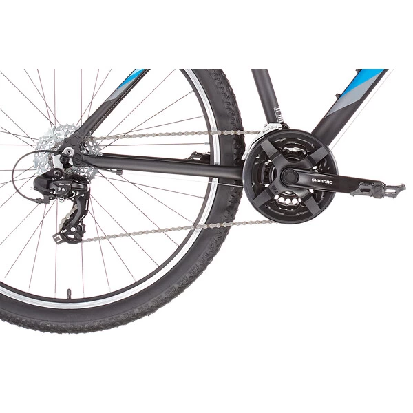 Il est doté d’un équipement fiable qui en fait un excellent VTT d’entrée de gamme surprenant par sa grande polyvalence. Conçu autour d’un cadre en aluminium robuste, le Rockville reçoit ainsi une transmission Shimano Tourney 21 vitesses permettant d’envisager tous les profils de sorties, une fourche suspendue de 60 mm de débattement parfaite pour absorber efficacement les petits chocs, et un système de freinage V-brake Alhonga mordant.