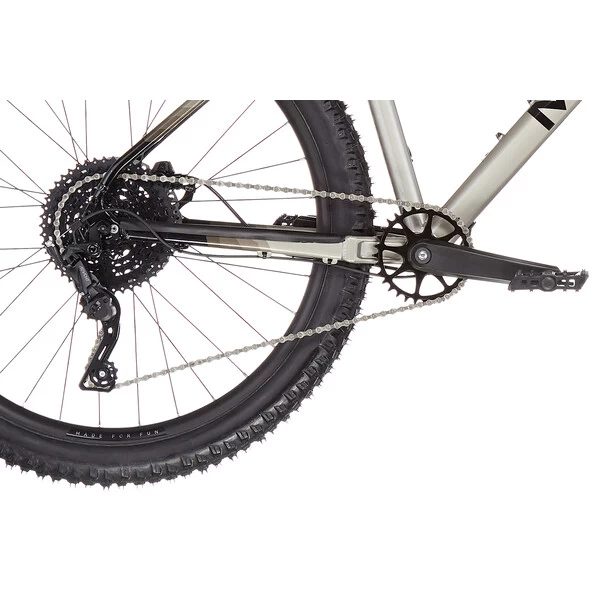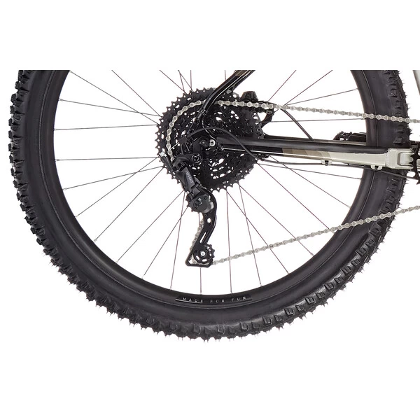 Le triangle supérieur incliné vous laisse un large dégagement pour les jambes, tandis que son angle de chasse ouvert (65°) et ses roues de 27,5″ avec pneus larges assurent confort, agilité et adhérencent sur les longues sorties.